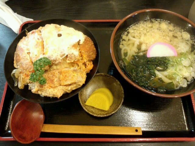 うどん屋さんのカツ丼セット。