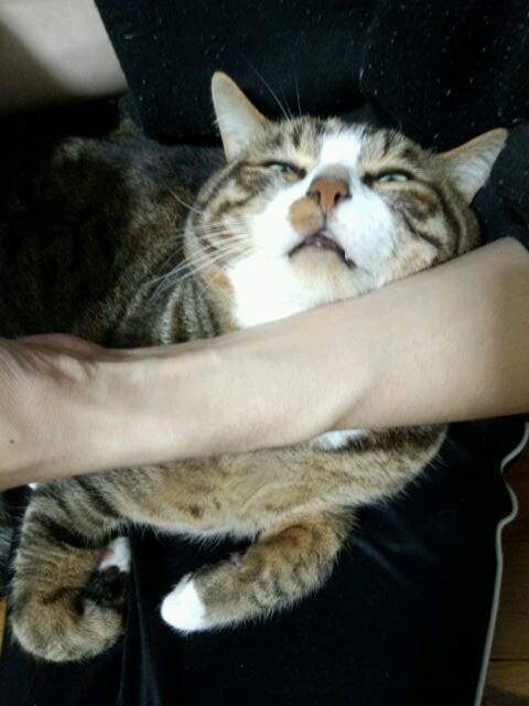 嘘喰いの新刊を読むぺーの膝の上にて。