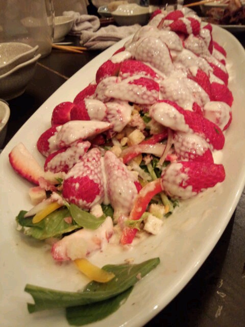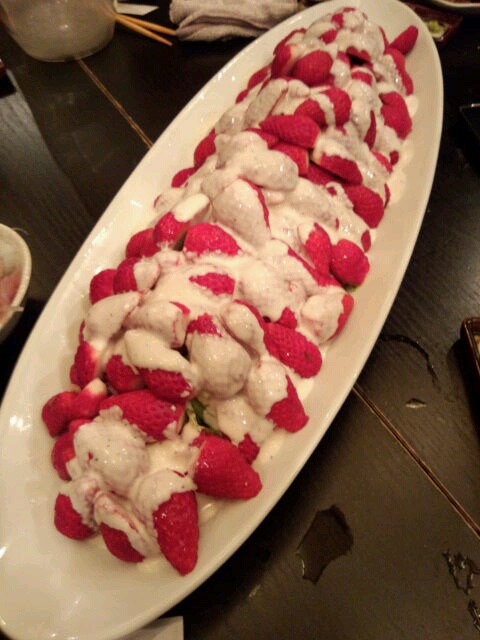 最後に出てきた料理。 とても美味しそう(*´▽`*) たっぷりのイチゴに練乳がとろんとろ! かと思いきや!! 中から、 サラダだと!? …かかっていたのは、 シーザードレッシングですたorz |
